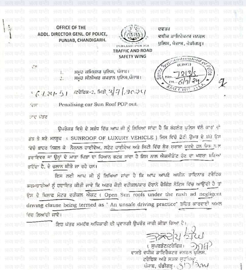 Additional Director General of Punjab Police has issued a letter in this regard to all the Police Commissioners and SSPs. It has been said in the letter that children come out of the sunroof on the roof of cars and make noise on the national highway, state and city, which distracts the driver and there is a fear of accident. Challans are being issued by Bengaluru Police against this.